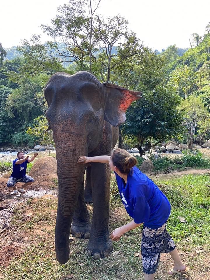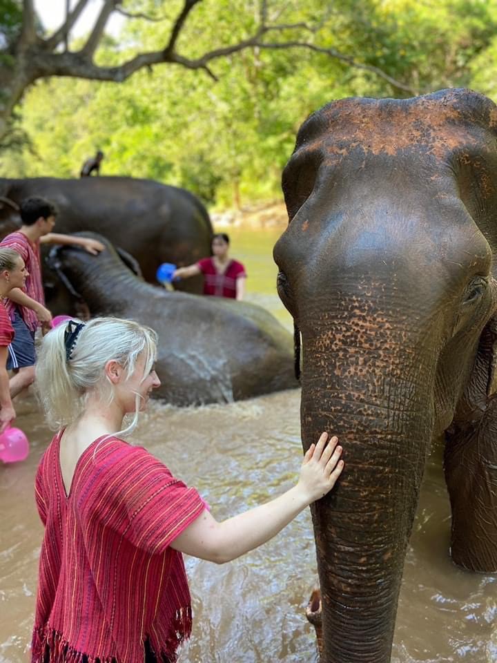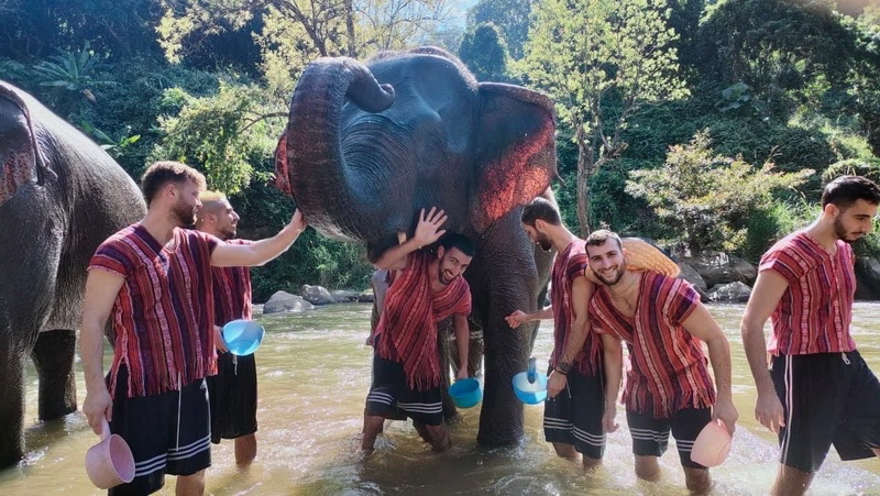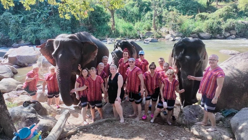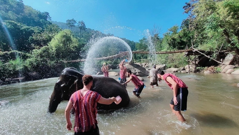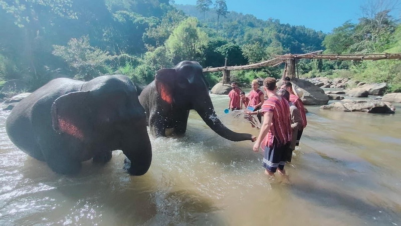 : Walk with the elephants River brush and bathing with them