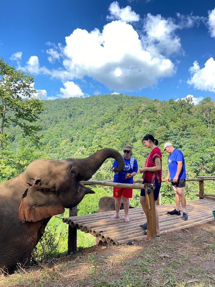 : Prepare food to feed the elephants, such as bananas, grass, and sugar cane.