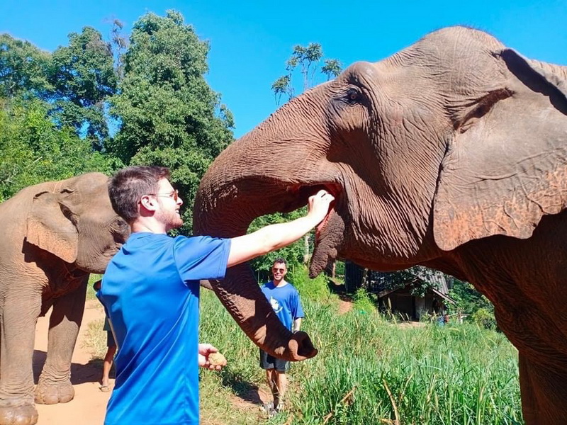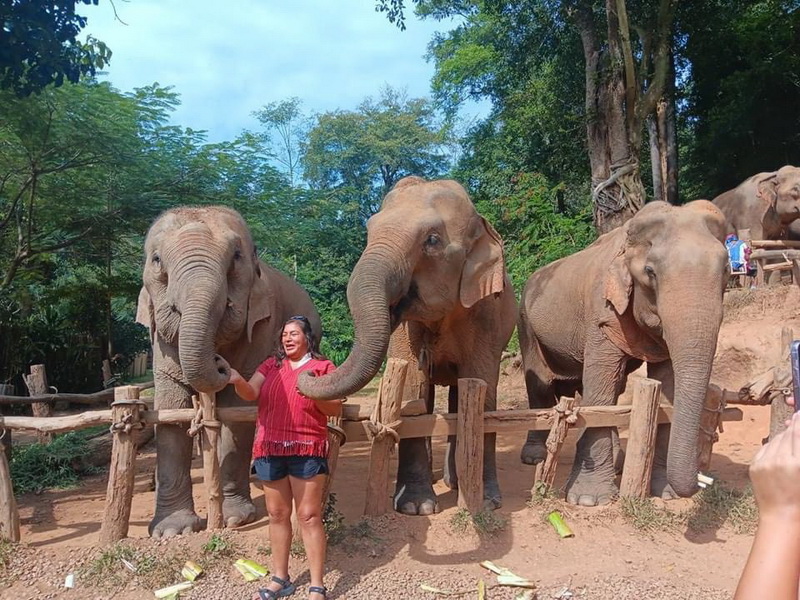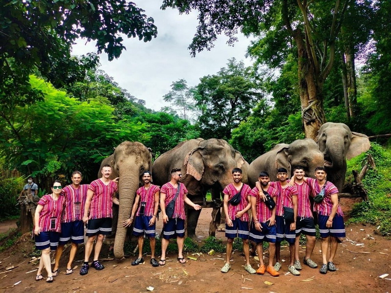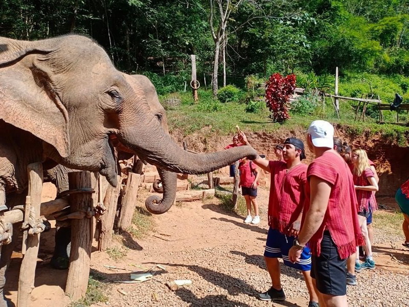 * Walk with the elephants to MaeTang River brush and bathing with them